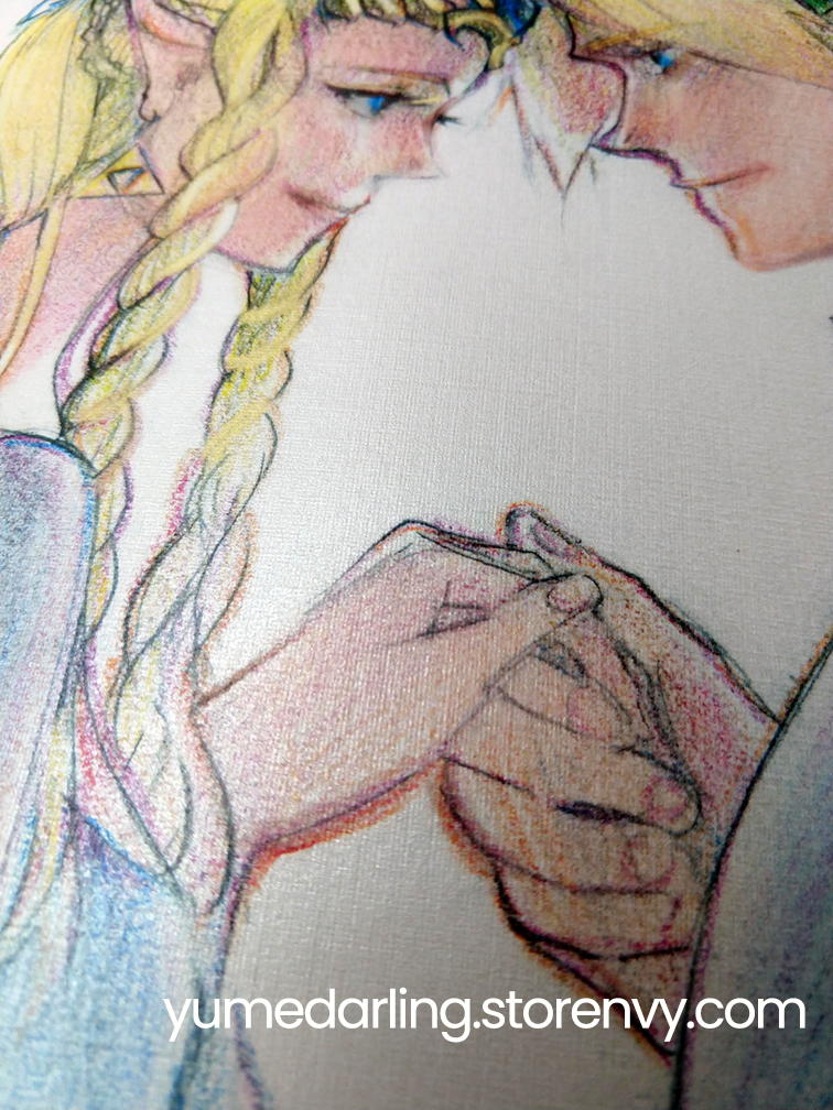 ♡ 8.5" x 11" on **Shimmer** Cardstock ♡ A print of a colored pencil drawing of the awaited day with Link and Zelda~